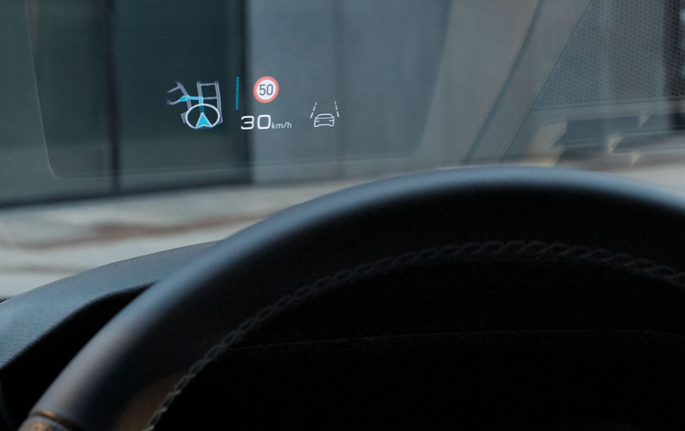 Indien nodig projecteert het head-up display²,¹⁴ de snelheid en andere relevante informatie van optionele uitrusting² in het directe gezichtsveld van de bestuurder.