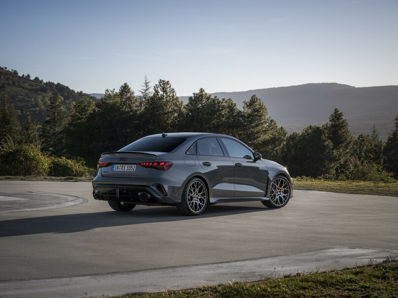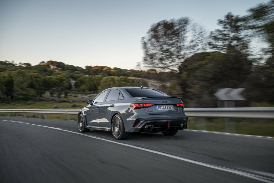 Met een vermogen van 294 kW* en een koppel van 500 Nm is de motor een hoogtepunt in de 5-cilindertechnologie. Speciale RS-instellingen in combinatie met quattro vierwielaandrijving met torque splitter zorgen voor een verbeterde wendbaarheid. De quattro vierwielaandrijving met RS-torque splitter verdeelt de aandrijfkracht naar behoefte dynamisch tussen de vooras en de afzonderlijke wielen op de achteras. De voor prestaties geoptimaliseerde banden zorgen voor de nodige grip.