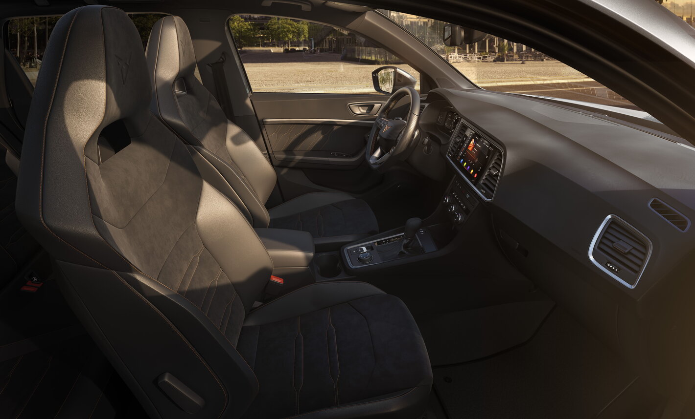 Het exterieurdesign van de CUPRA Ateca is voorzien van een herziene diffusor achteraan, wat extra bijdraagt tot de gesculpteerde look van het voertuig. Binnenin sluiten de CUPRA-kuipstoelen perfect aan bij het sportieve uiterlijk, net zoals het CUPRA-stuurwiel, dat kan worden uitgerust met satellietknoppen. Specifieke CUPRA-inzetstukken in de deurpanelen en koperkleurige stiksels maken de look af.