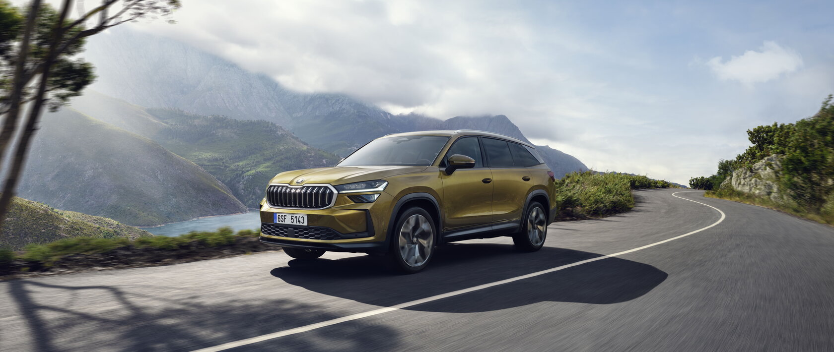 Van opzij springt de aerodynamisch geoptimaliseerde en uitgerekte daklijn, in combinatie met platte dakrails in geanodiseerd zilver, meteen in het oog. Door de tornadolijn die over de lengte aan de zijkant van de wagen loopt, oogt de Kodiaq dynamischer. Het gesculpteerde koetswerk dat over de voor- en achterwielen loopt en de wielkasten accentueert, benadrukt dan weer zijn robuustheid. Het krachtige, stijlvolle design wordt onderstreept door velgen tot 20" en elementen in zwarte generfde kunststof, net zoals de zeshoekige wielkasten en de deurdrempels.