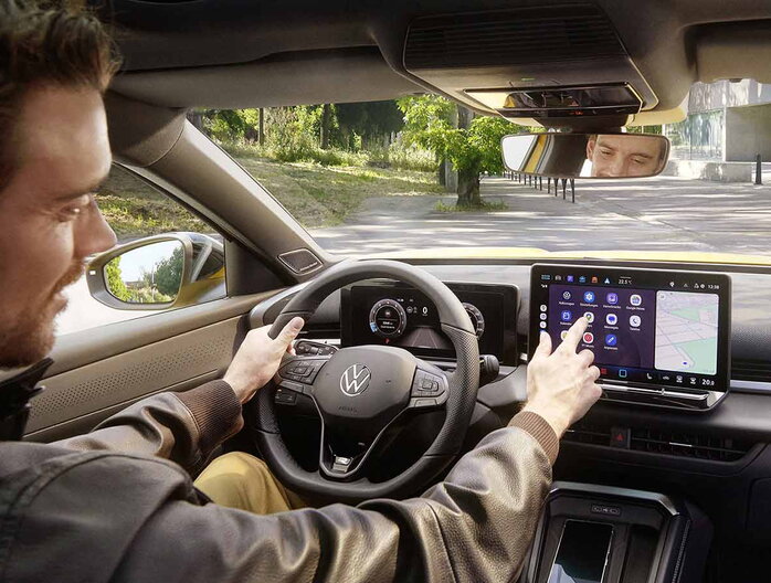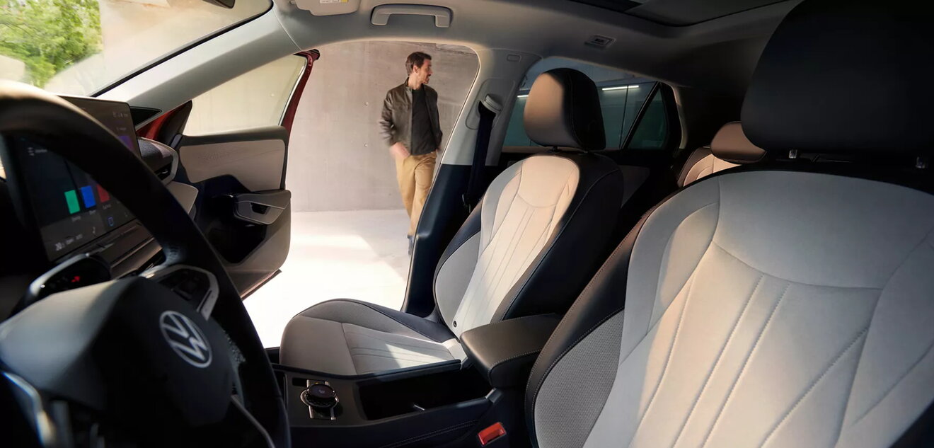 Het interieur van de nieuwe T-Roc combineert een modern design met een hoge functionaliteit. De riante beenruimte achterin en tot maar liefst 1.350 liter laadvolume bieden veel plaats voor het dagelijks leven en de vrije tijd. De middenconsole met een opbergruimte van 5,5 liter zorgt voor extra comfort. Met het centrale touchdisplay van 32,7 cm (12,9 duim) kunt u de navigatie, media en voertuigfuncties intuïtief bedienen. Gedeeltelijk gestoffeerde oppervlakken, sfeerverlichting met 30 kleuren, van binnenuit verlichte deurpanelen, stoelbekledingen in ArtVelours in de kleuren Soul-Schwarz of Mistralgrau en de Climatronic met 3 zones zorgen voor een prettig gevoel van ruimte. De ergoActive-bestuurdersstoel in het uitrustingsniveau Style is 14-voudig deels elektrisch instelbaar en zorgt dus ook tijdens lange ritten voor een hoog zitcomfort. Ook op de passagiersstoel kan de massagefunctie worden gebruikt. Bovendien kunt u dankzij de neerklapbare rugleuning van de passagiersstoel ook lange en omvangrijke spullen comfortabel meenemen.