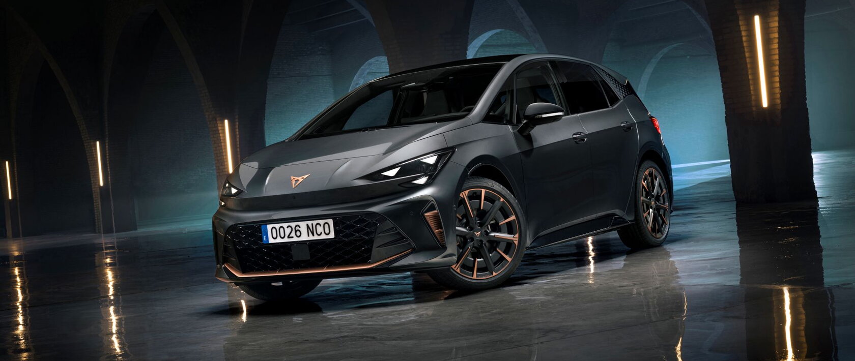 De nieuwe CUPRA Born trekt de aandacht met zijn scherpe ‘shark nose’ en iconische driehoekige koplampen. De nieuwe kleur Timanfaya Grey, koperen details en Matrix LED-verlichting (beschikbaar op de VZ uitvoering) maken het karaktervolle exterieur compleet.