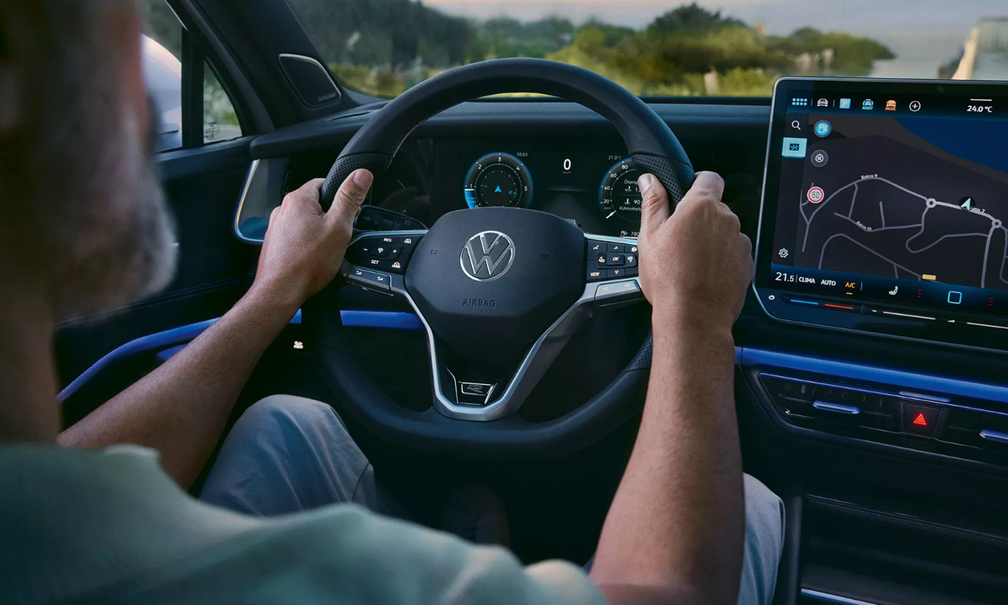 Met meer dan 19.000 LED's per koplamp zorgt de verlichting van de Tayron ervoor dat je steeds de perfecte hoeveelheid licht hebt. ’s Nachts creëert hij een volledig lichttapijt op jouw rijstrook, zonder dat tegenliggers er hinder van ondervinden. Alles is ontworpen met jouw veiligheid en comfort in gedachten. Een leuk extraatje: ook de Volkswagen-logo’s lichten stijlvol op.